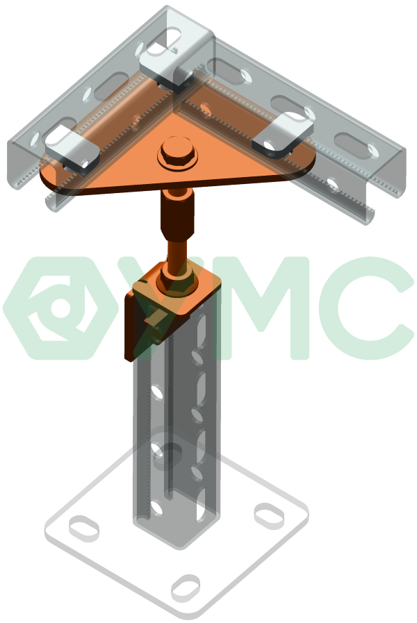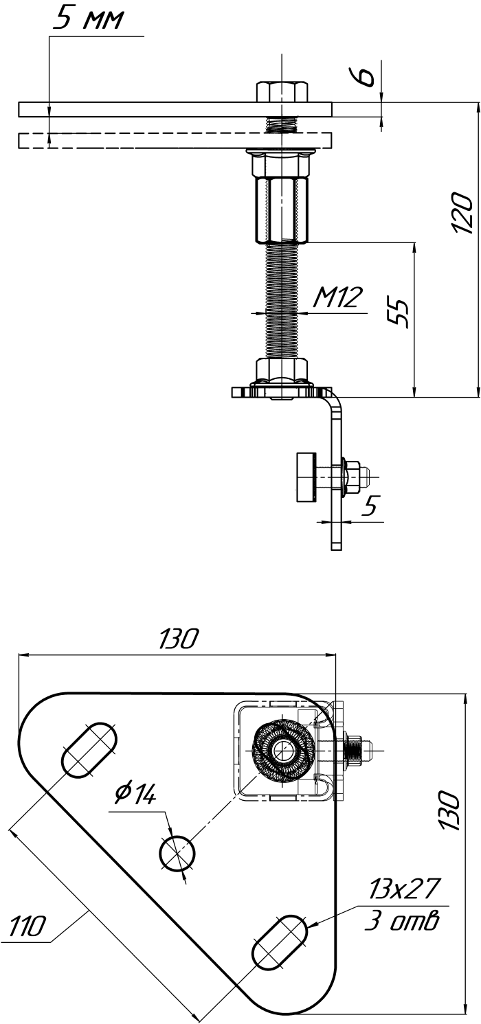 нижней винтовой части с нижним основанием и контргайки. Опоры регулируются по высоте в пределах 50мм, обеспечивая ровную поверхность пола. Они изготавливаются из