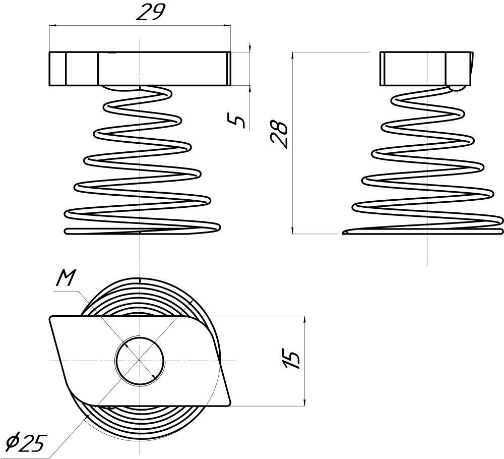 - Конусная пружина обеспечивает позиционирование по каналу профиля