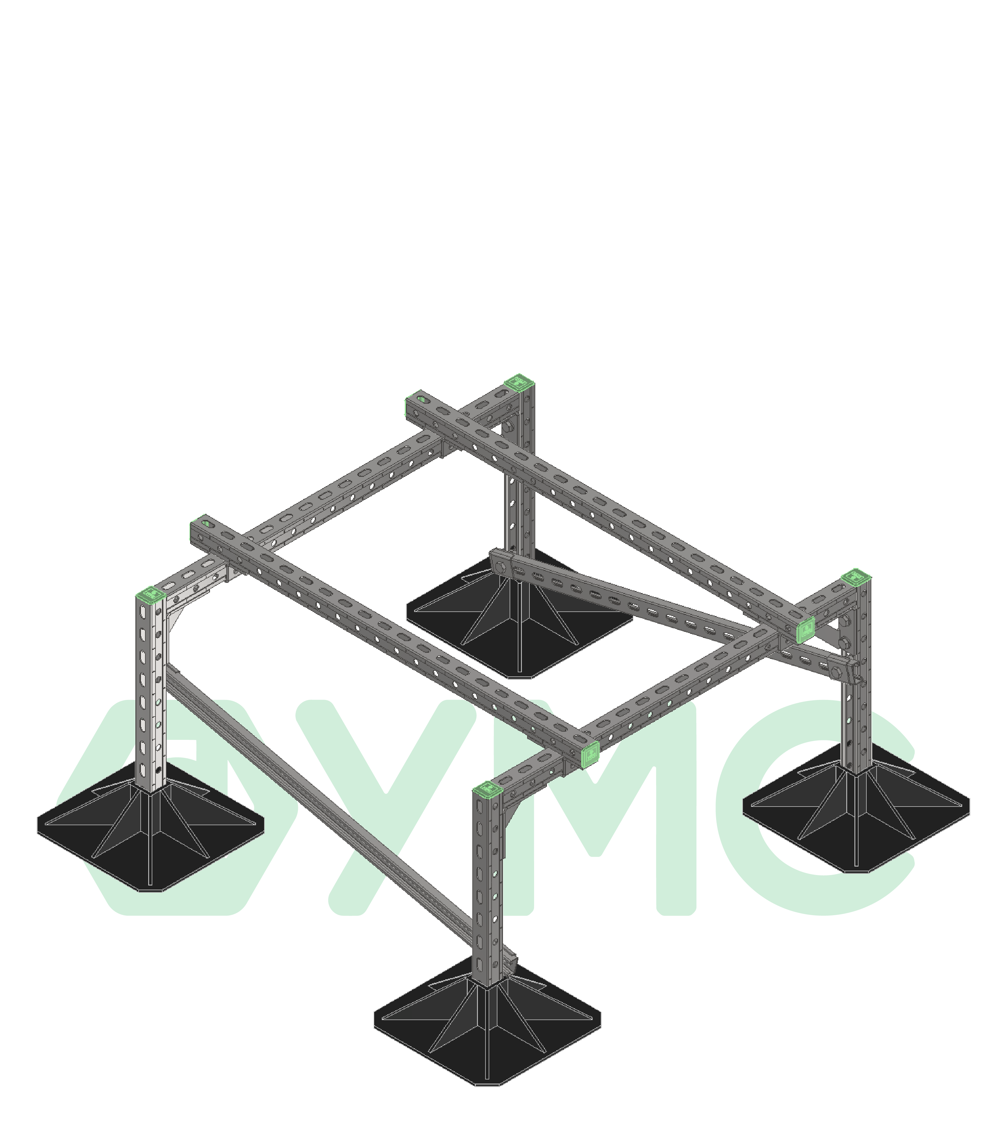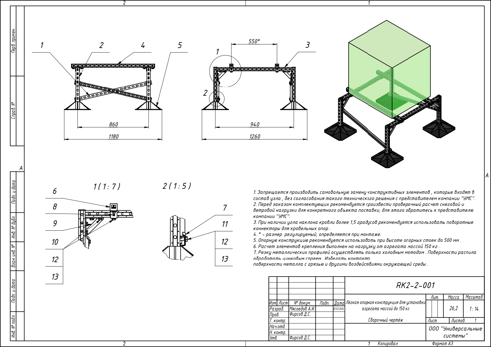 Опорная конструкция УМС на кровельных опорах способна выдерживать большие нагрузки, включая снеговые и ветровые.