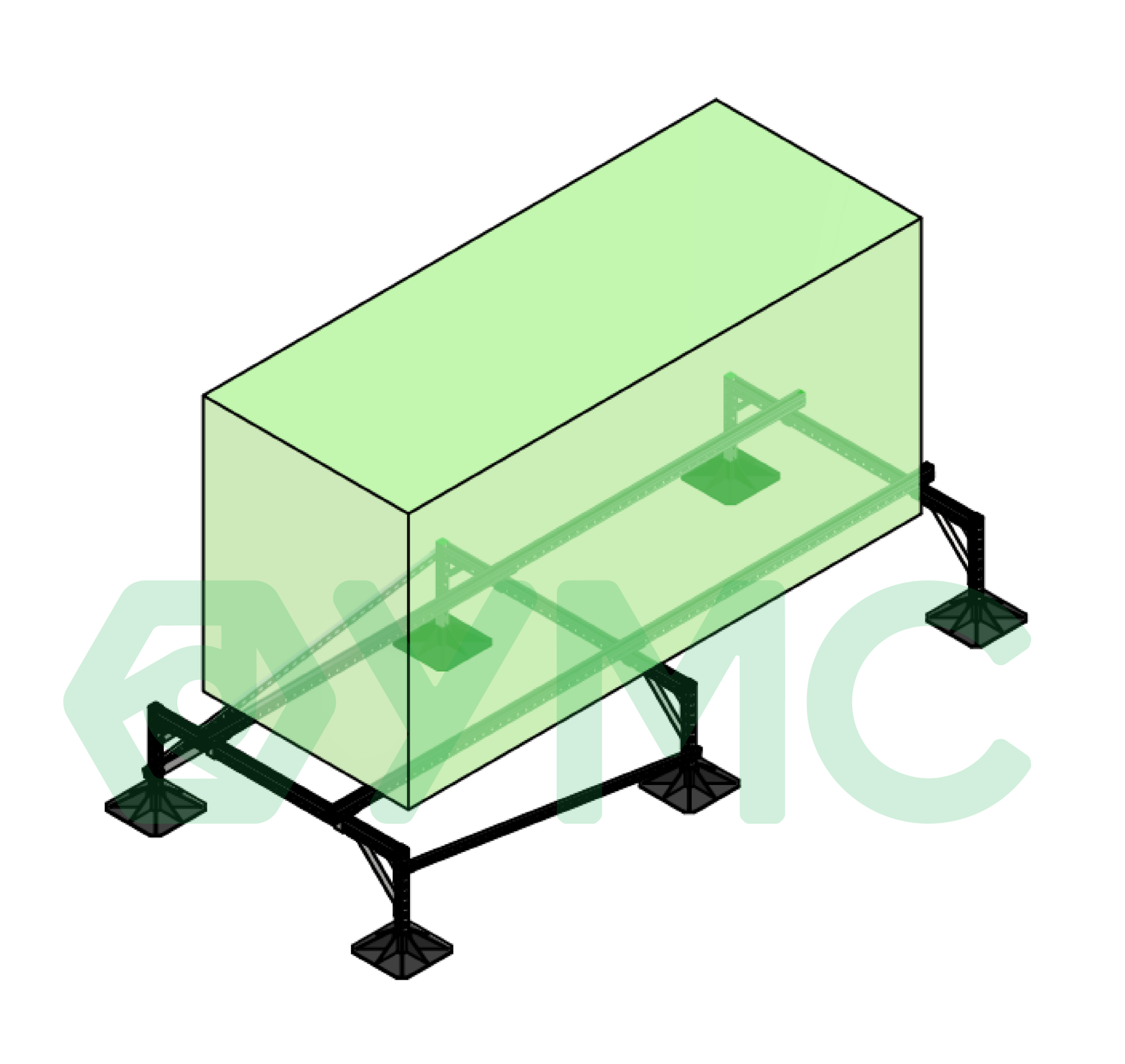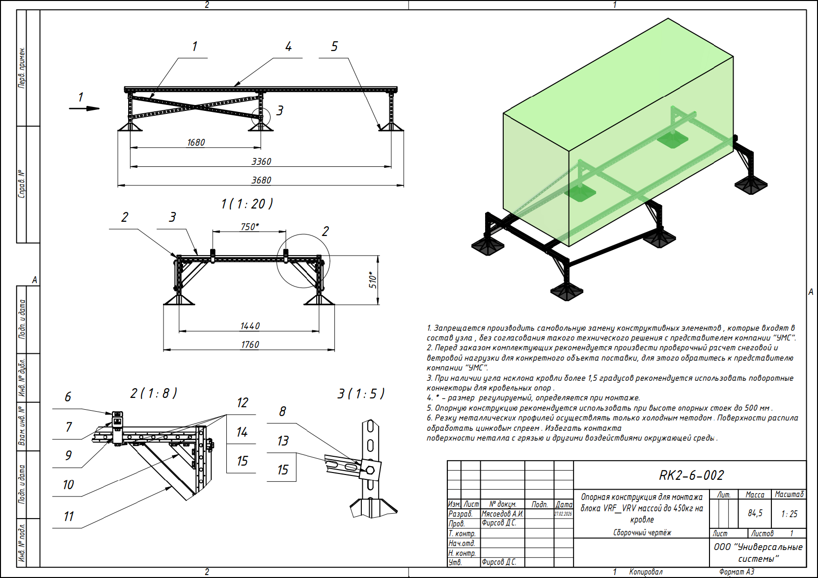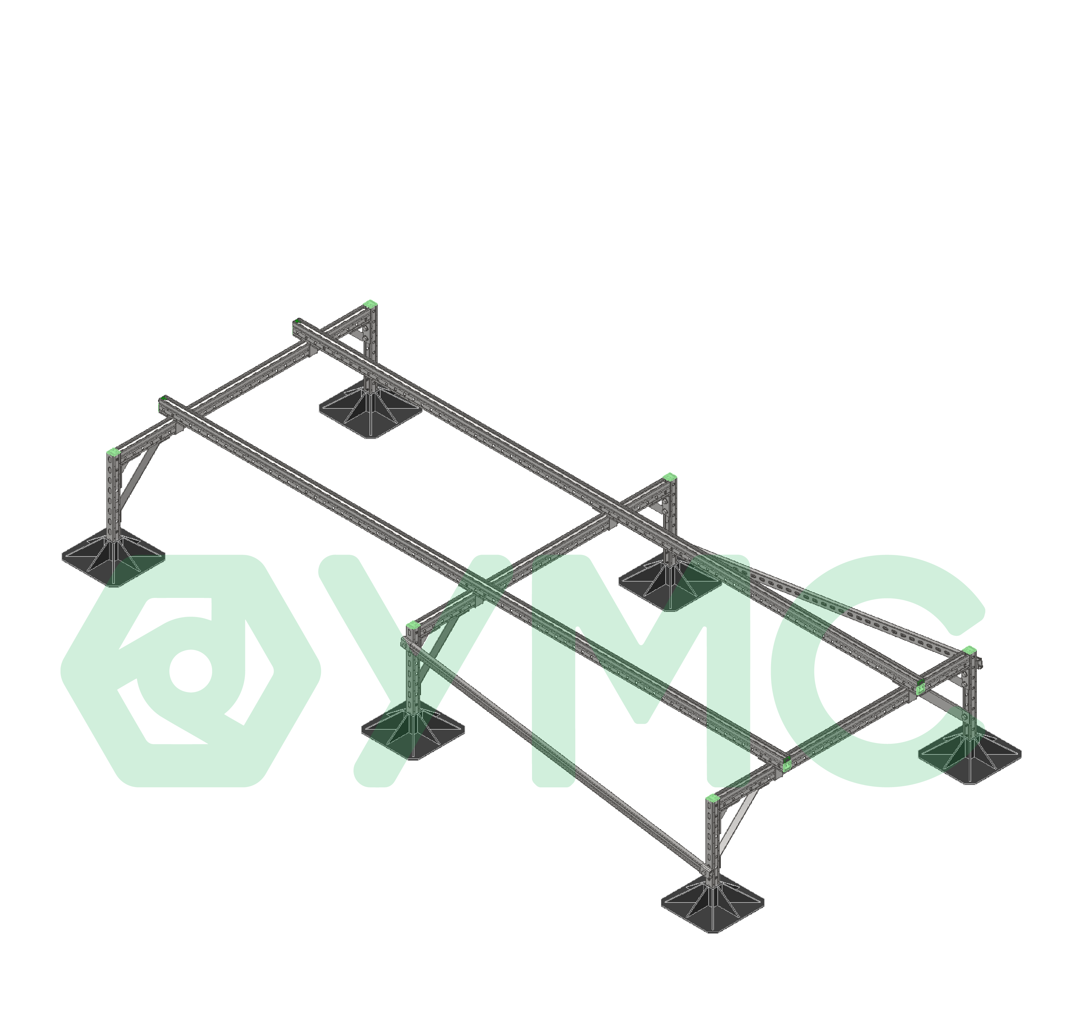 Опорная конструкция УМС на кровельных опорах способна выдерживать большие нагрузки, включая снеговые и ветровые.