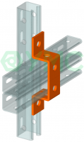 Крепежный элемент для перекрестного соединения двух монтажных профилей при сборке несущих конструкций и систем.